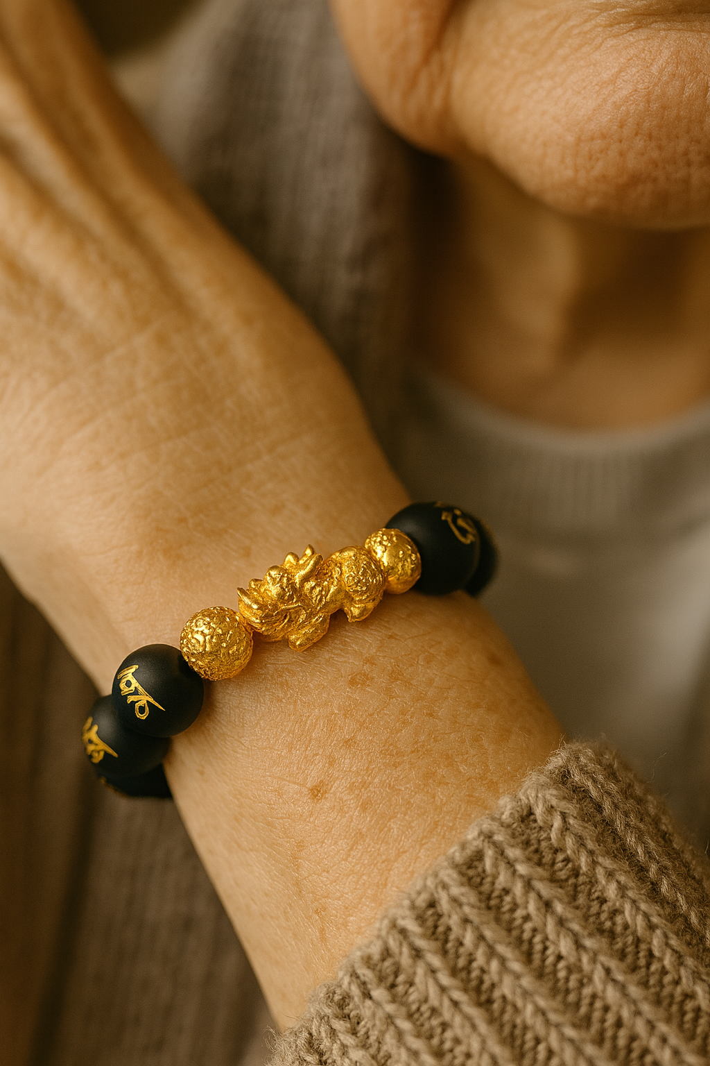 ✨ Feng Shui Black Obsidian Wealth Bracelet – Skydd, rikedom & framgång i vardagen