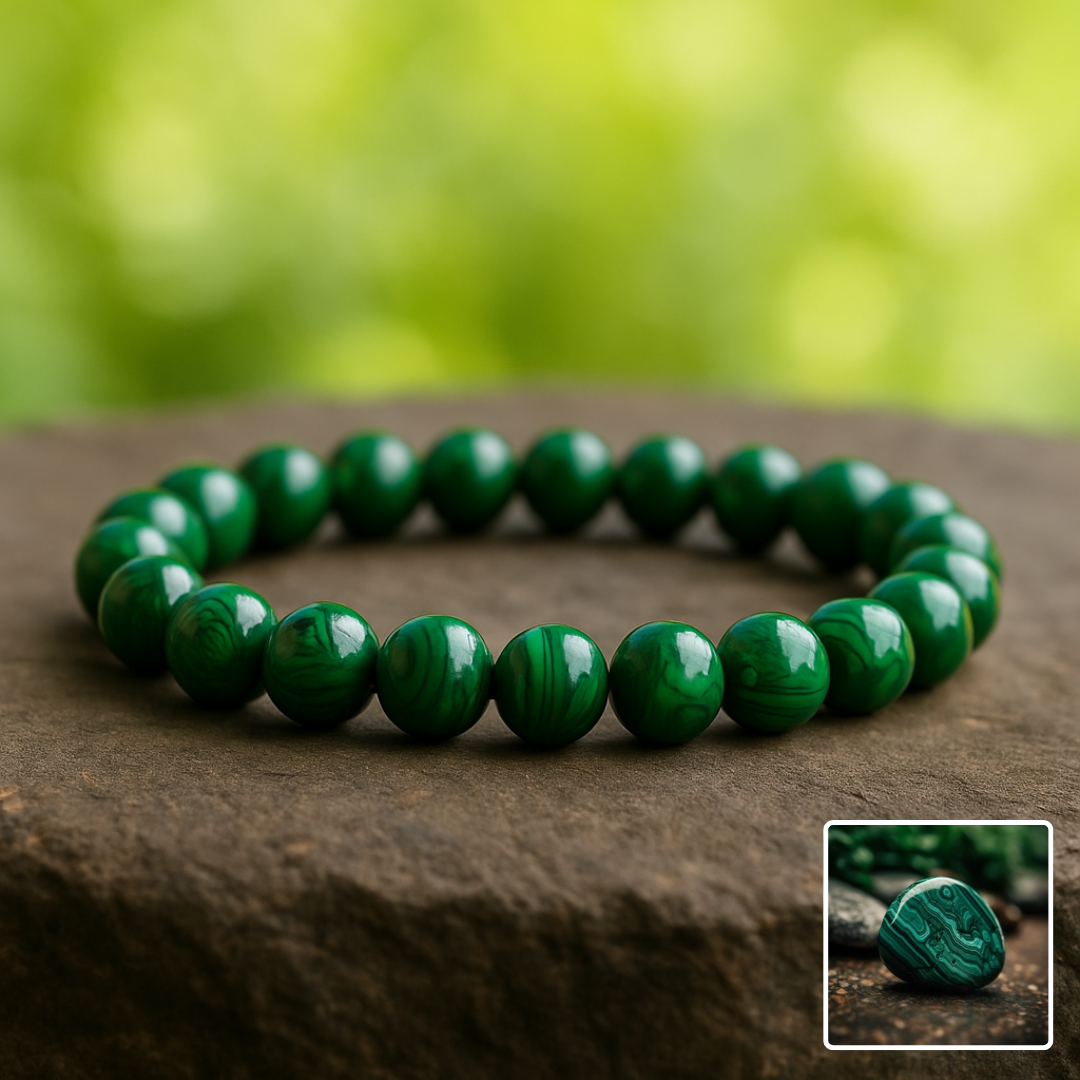 Upptäck Malakitarmbandet – ett armband där naturens magiska skönhet möter stenens djupa, läkande energi.
