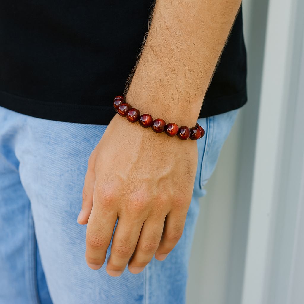 Detta kraftfulla armband med Rött Tigeröga är skapat för att väcka din inre styrka och passion.